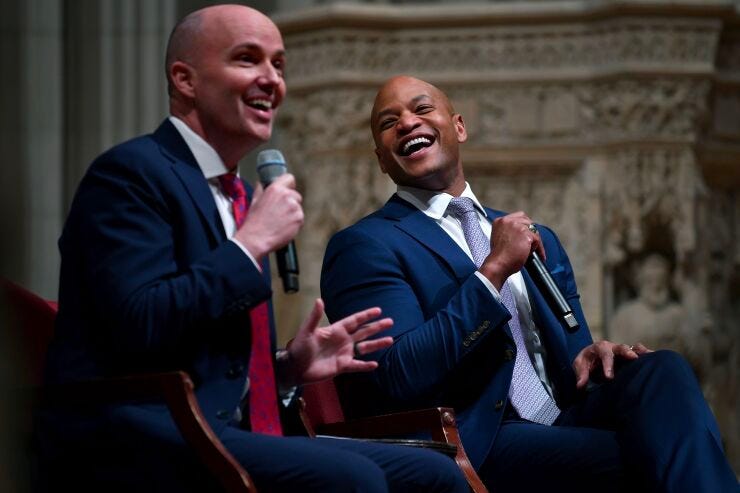 Both Governors have a focus on service as a unifier. Utah leads the nation in service. Maryland is the first in the nation to offer a service year option to high school graduates. Governor Moore said “service is sticky” and that “those who serve together will stay together.” He had comrades with whom he served in Afghanistan—and with differing political persuasions—knocking doors and telling folks to vote for him because of his character.